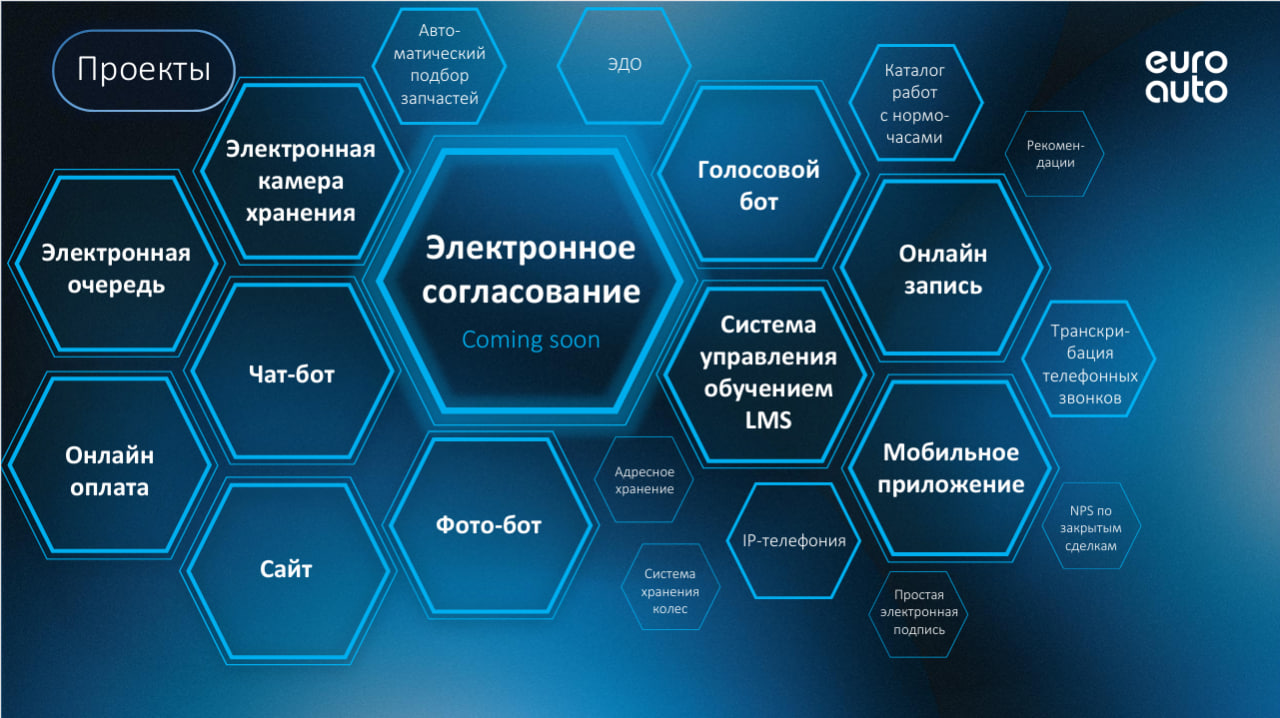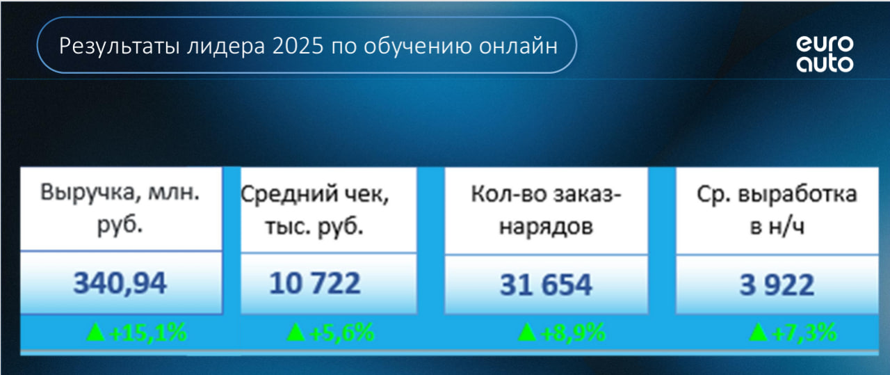 Внедрение всех процессов проходит через обучение персонала. На портале Академии ЕвроАвто более 100 курсов, 300+видео. Многие курсы и тренинги разработаны не только для обучения собственных сотрудников, но и подходят для коллег из отрасли. С 2025 года, для сети был внедрен новый KPI - по потреблению контента на обучающем портале. В динамике стало заметно, как обучение влияет как на финансовые показатели предприятия, так и на индекс лояльности клиентов.